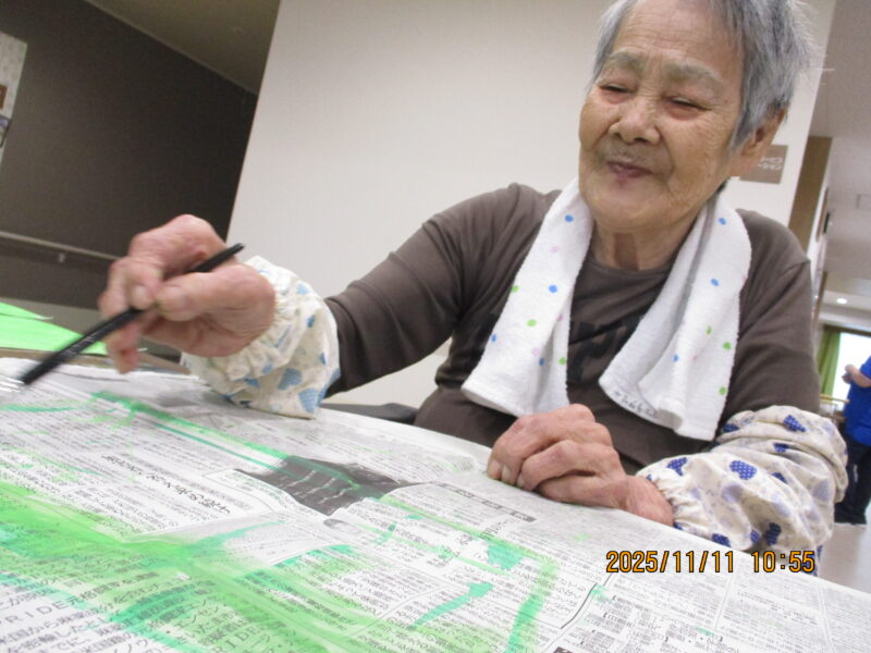 入居者様も一緒に飾り付けを楽しまれ、カメラを向けると皆さん素敵な笑顔を見せて下さいました。
