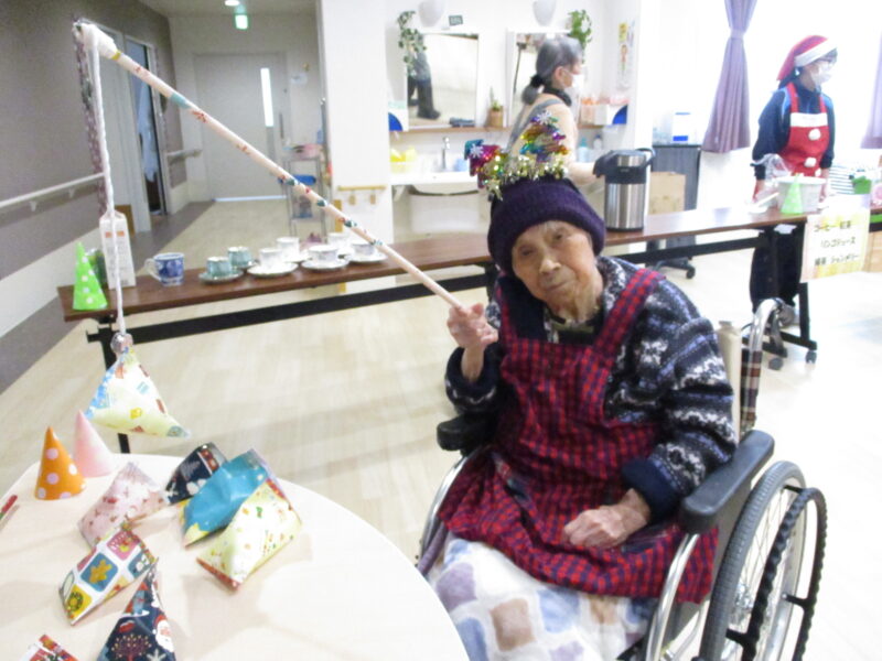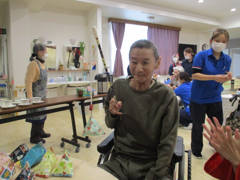 入居者様はケーキやプリン、お好きな飲み物を召し上がられ、また、ゲームや周囲との会話を楽しまれていました。