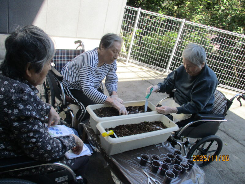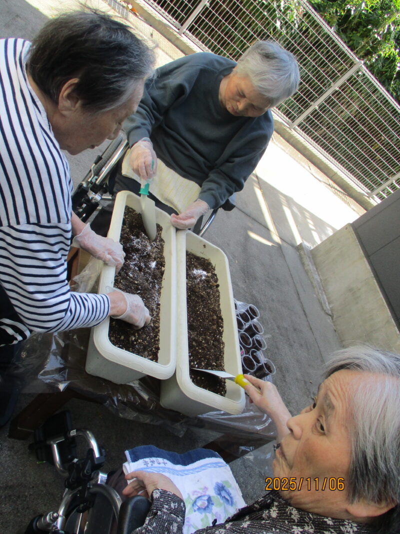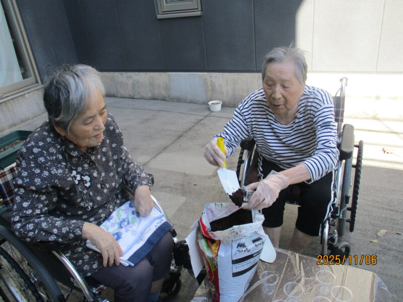 11月6日、ユニットの中庭で園芸活動を行いました。
