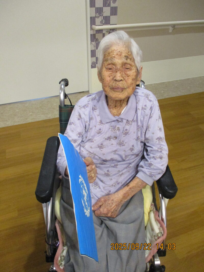 敬老の日(令和7年9月15日)を迎え、入所者の方々にお祝いを申し上げます。