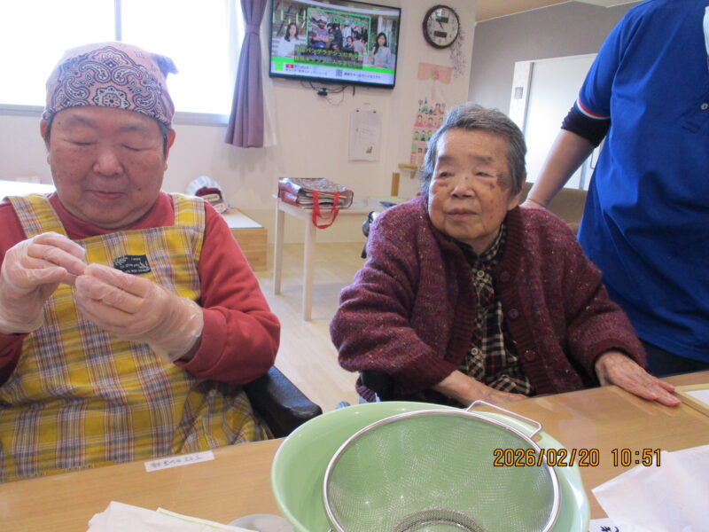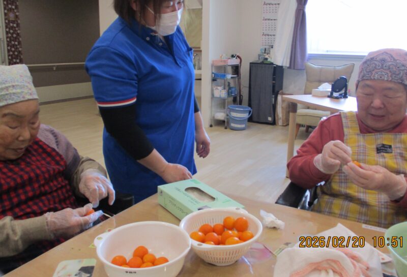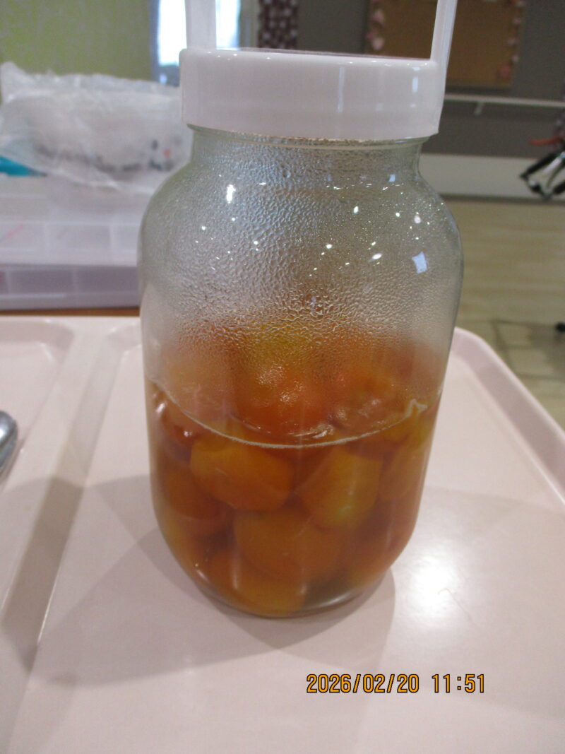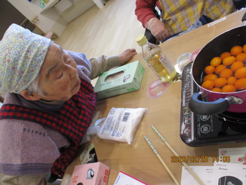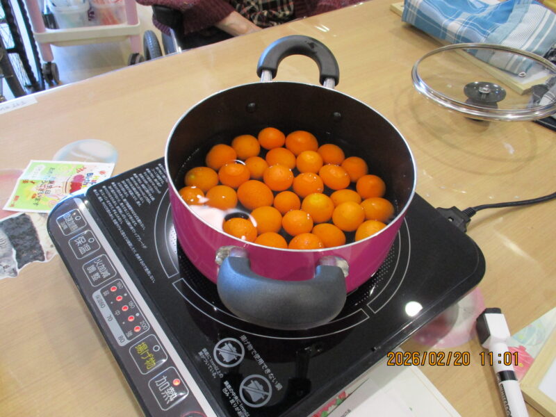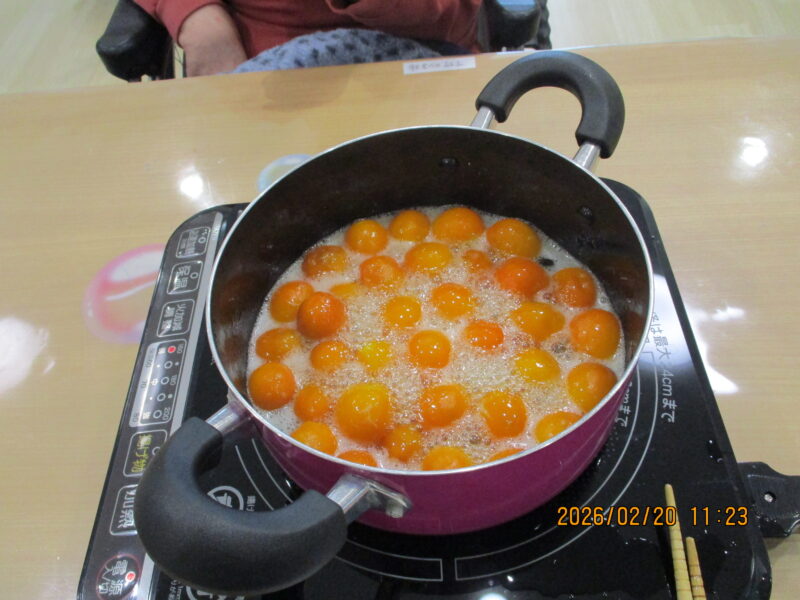 きんかんシロップ煮作り(令和8年2月20日) 2026 3/03 活動・行事 2026-03-03 2月20日、今が旬のきんかんを使い「きんかんシロップ煮」を作りました。作り方や分量、保存方法など、入居者様に教えて頂きながら調理を行い、完成後は瓶に詰め、美味しそうなシロップ煮が完成しました! (ききょうユニットリーダー 元脇) 活動・行事 よかったらシェアしてね! URLをコピーしました! URLをコピーしました! バレンタインのお菓子作り(令和8年2月13日) この記事を書いた人 shukeikai 関連記事 バレンタインのお菓子作り(令和8年2月13日) 2026-03-03 節分会(令和8年2月3日) 2026-02-10 オレンジボランティア(令和8年1月21日) 2026-02-10 火の神ドライブ(令和8年1月16日) 2026-02-10 ぜんざい会(令和8年1月6日) 2026-01-14 クリスマス会(令和7年12月25日) 2025-12-30 ドライブに行ってきました!(令和7年12月8日、9日) 2025-12-23 クリスマスに向けて(令和7年12月) 2025-12-23 コメント コメントする コメントをキャンセルコメント ※ 名前 メール サイト 次回のコメントで使用するためブラウザーに自分の名前、メールアドレス、サイトを保存する。 Δ